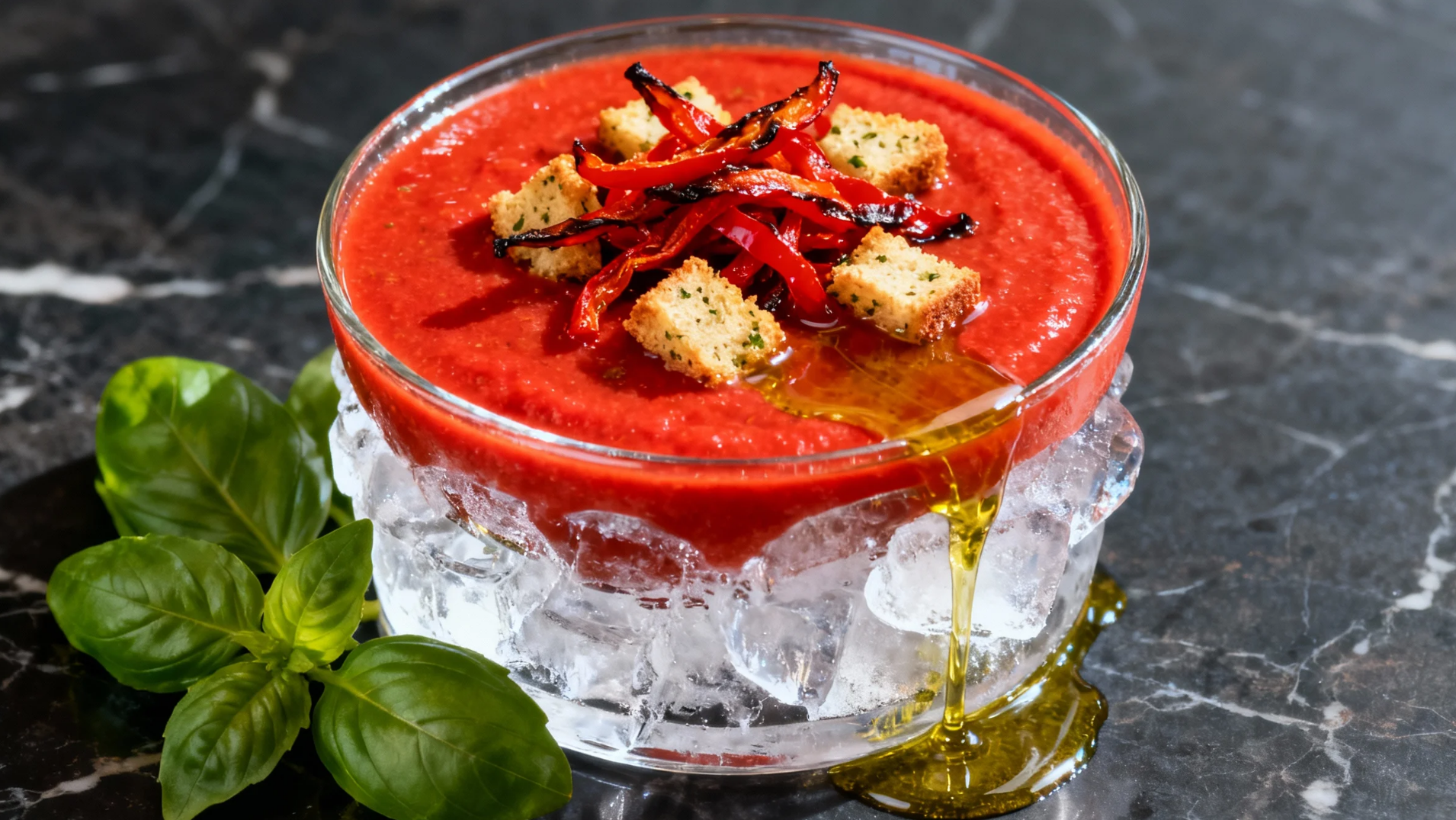 西班牙冷湯配烤紅椒及脆麵包丁