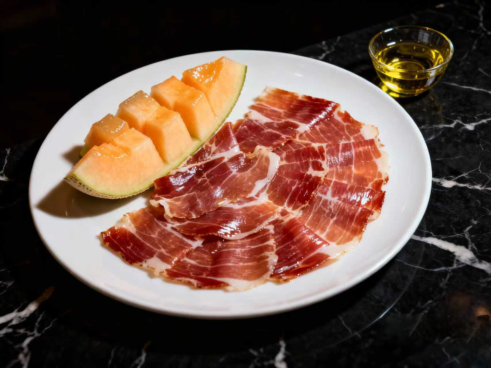 西班牙風乾火腿拼盤配蜜瓜及橄欖油